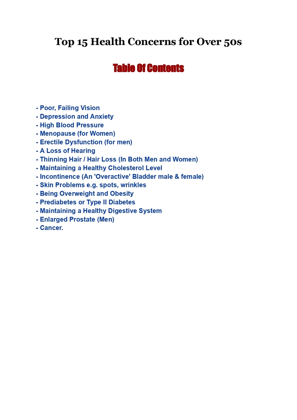 It explains the most common health challenges (15 in total) faced by men and women over 50 and shows them how to manage or prevent them, naturally.